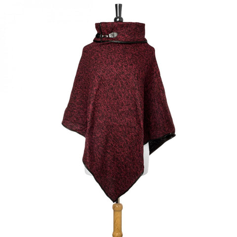 Heathered Burgundy Knit Poncho With Leather Buckle Detail 100% Polyester Dry Clean only. Measurements: 38 x 36. Brown leather buckles secure the top of a warm knitted poncho. Equal parts bold and sophisticated. Our scarf selection is stylishly designed without sacrificing comfort. We offer different choices of fabric color and style. Browse our selection and you'll definitely find your unique look.