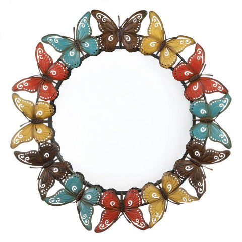 A flock of beautifully detailed and perfectly weathered butterflies surrounding a circular wall mirror is just what your room needs! The iron framework features multicolor butterflies that are a delight to behold.