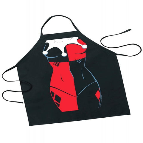 Dress like Harley Quinn when you're in the kitchen making puddin' for the Joker! This Batman Harley Quinn Character Apron has been made to look like Harley's torso so you can play dress up while you cook! This great apron is a must-have for fans of DC Comics' Batman universe and Harley Quinn. Made in the USA. Ages 14 and up.