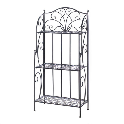 Gorgeous! This stunning cast iron bakers rack will add a dash of exquisite style to any room of your home. With three pretty shelves and opulent cast iron flourishes you can display your decorations collectibles plants and beyond in high style.