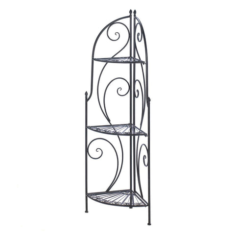 No corner should go without a dash of bewitching style. This pretty cast iron corner shelf will turn your empty space into a showcase for your prized collectibles pretty decor and favorite greenery. It features scrolling iron flourishes and three lovely pie-shaped shelves.
