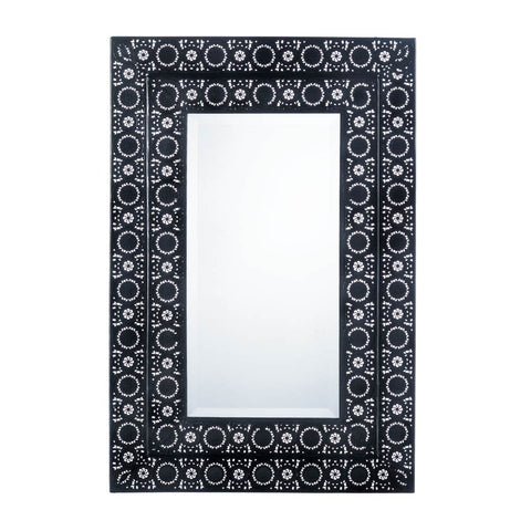 Looking good is easy with this gorgeous rectangular wall mirror. The two-tiered iron frame features a Moroccan-inspired design and the inset mirror features beveled edges.