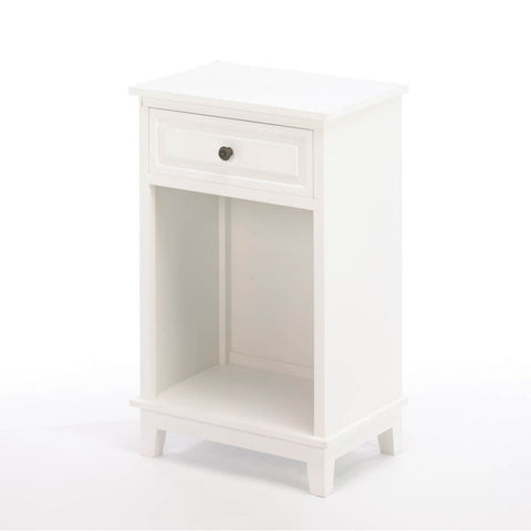 A classic shape and just the right amount of detail makes this side table a beautiful addition to any room. The pretty pullout drawer features a metal pull knob and below youll find the perfect spot for books and more!