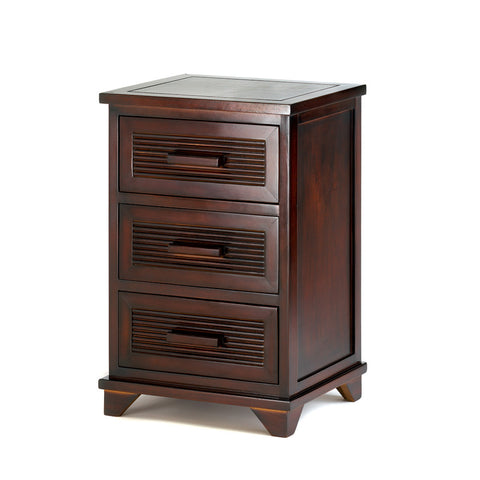 Sleek and attractive this dark wood-finished unit is equally at home beside a bed or adding storage next to a sofa. Three roomy drawers hold plenty of items right at easy reach yet neatly out of sight.