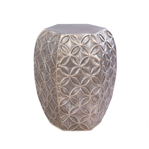 This elegant stools fascinating texture and understated glamour easily enhances any space. It features six sides covered with a tactile pattern that bursts with style. Its gorgeous metallic finish gives it depth and sheen that will always be fashionable.