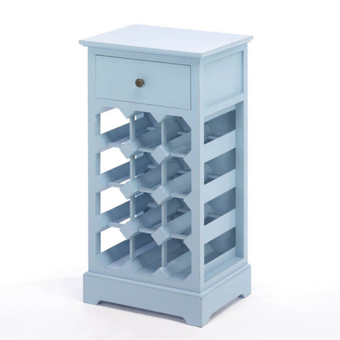 What a noble way to store your favorite wine! This lovely storage cabinet features a pullout drawer at top and seats 12 bottles of vino below. The calming shade of blue will showcase your great taste in decor and wine!