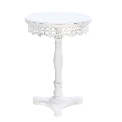 Just say no to boring tables! Add dramatic flair to your home with this table’s shabby chic finish that perfectly highlights the decorative cutwork around the base of the tabletop.