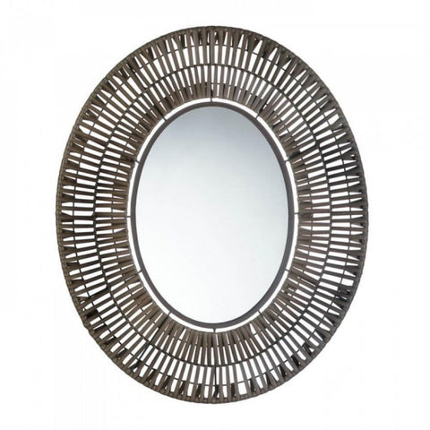 Bold style and beautiful design makes this oblong wall mirror a standout that you need to add to your decor! Youll love the layers of faux brown rattan that weaves around this oval mirror and it will look great above your entry table fireplace or in your bedroom.